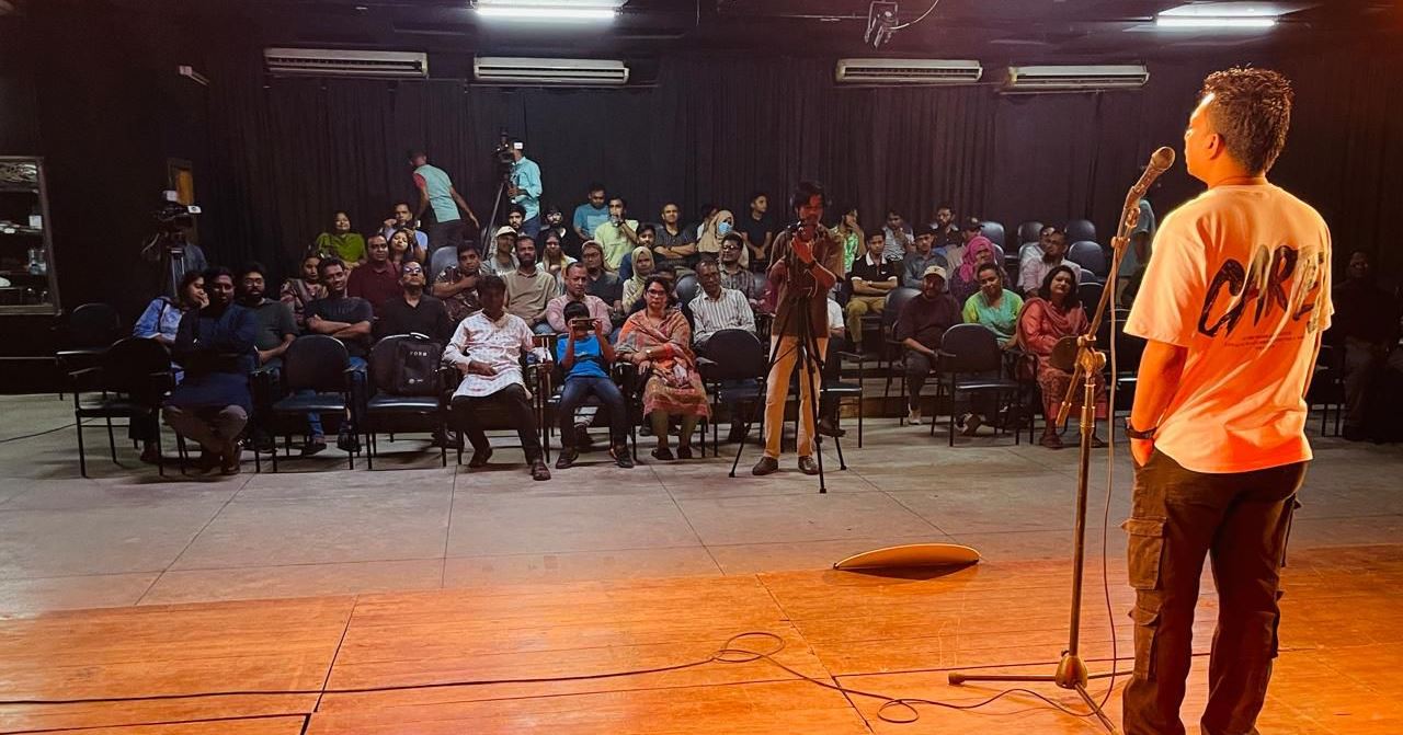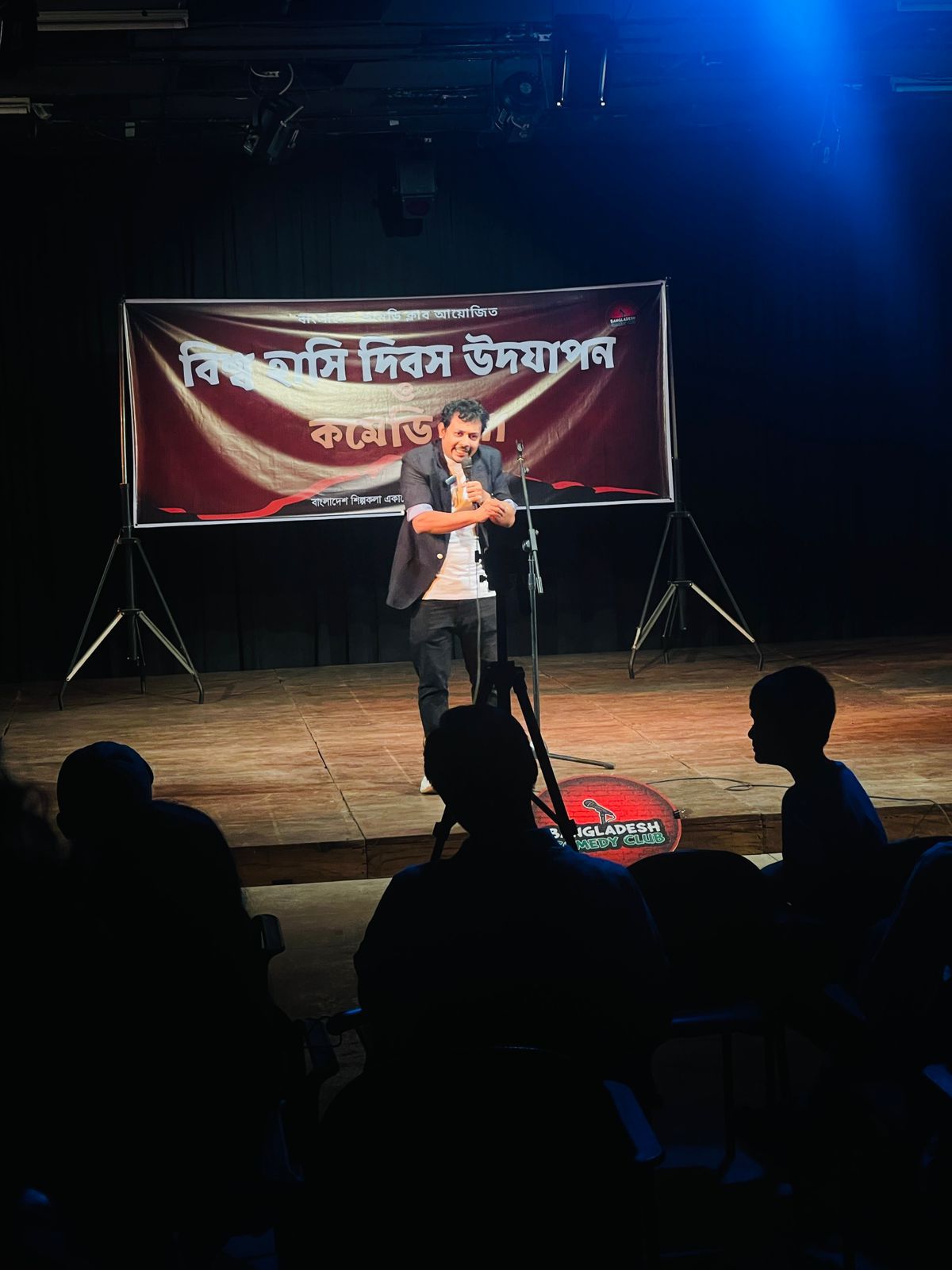 শো এর পূর্বে বাংলাদেশ শিল্পকলা একাডেমির মূল ফটকের সম্মুখে স্ট্যান্ড আপ কমেডিনরা মিলিত হয়ে বিশ্ব হাসি দিবসের প্লাকার্ড, ফেস্টুন, ব্যানার হাতে নিয়ে সকলকে শুভেচ্ছা জানান ও দিনটি উদযাপন করেন।